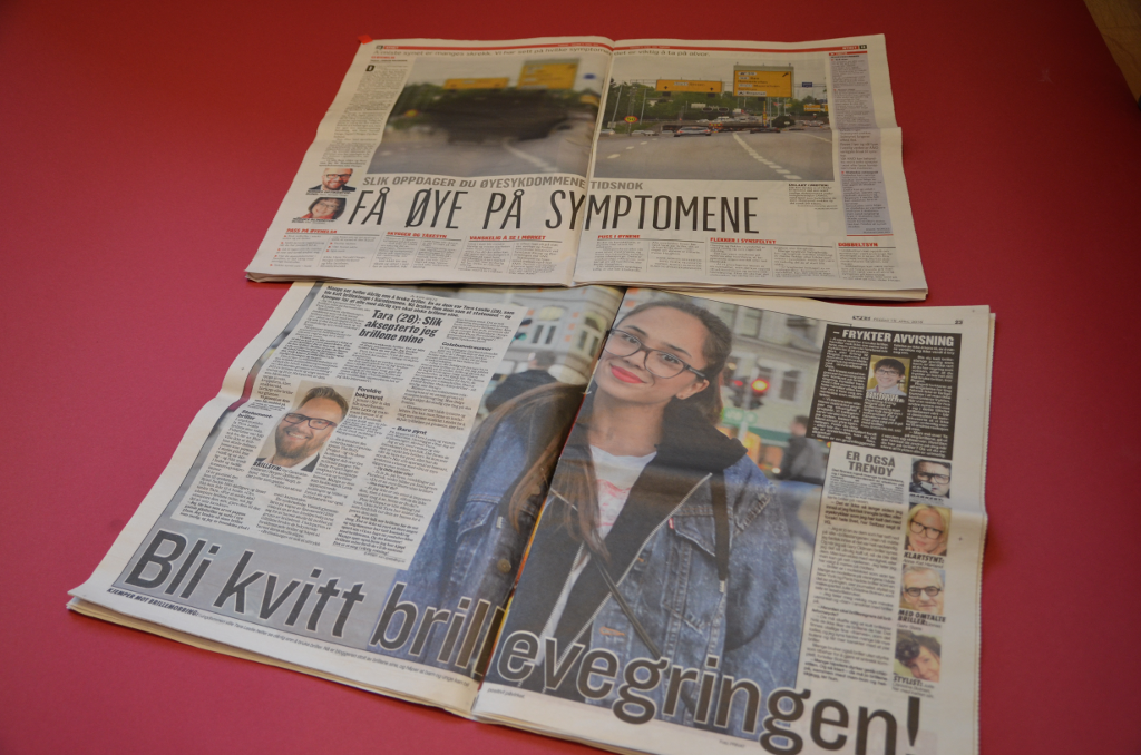 VG og Dagbladet hadde før helgen dobbeltsider om syn, briller og øyesykdommer. Norges Optikerforbund er intervjuet i begge de store oppslagene,. Vi forteller om symptomer på øyesykdommer og hva som gjøres for at barn ikke skal føle seg som «brilleslanger».